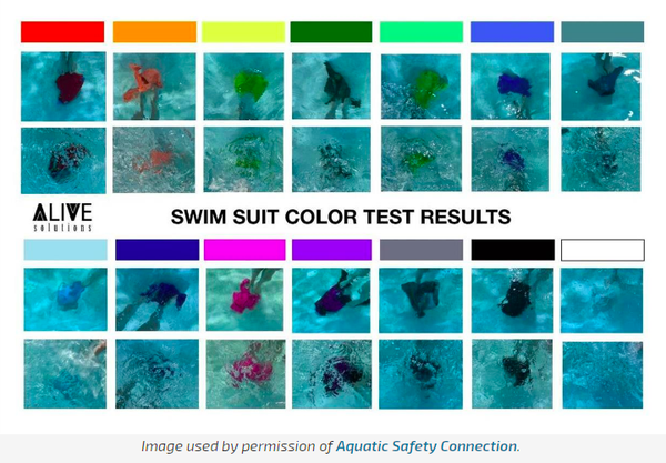 To get a better idea of how various colors appear underwater, look at the image below, which compares different colored swimsuits under the same lighting and water condition.